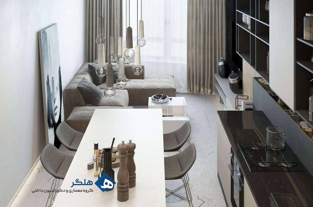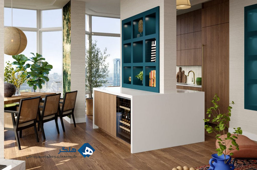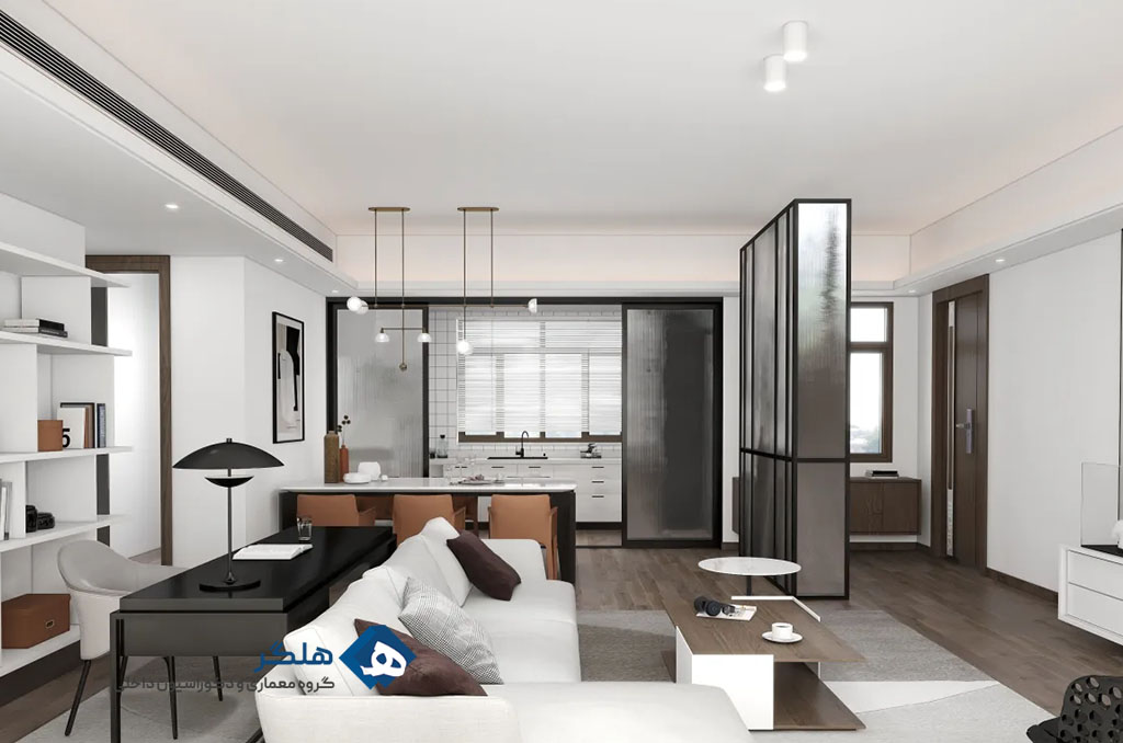- طراحی یک فضای باز با کم کردن دیوارهای بین فضاها (مثل پذیرایی و آشپزخانه).