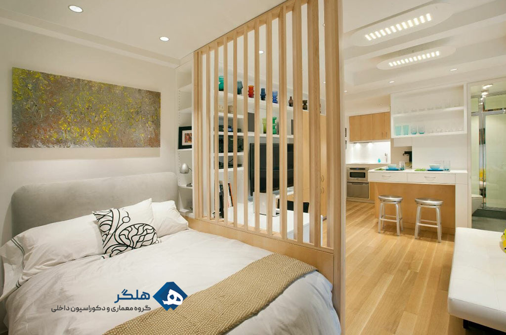 - استفاده از قفسهها یا پاراوانها برای تفکیک فضا بدون دیوار.