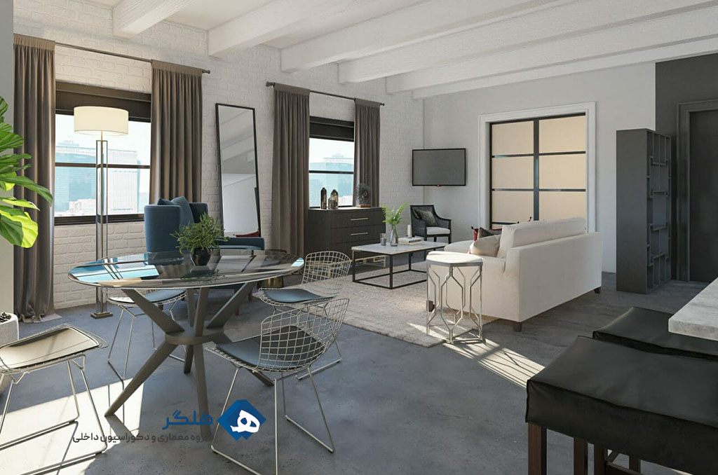 - سعی کنید چیدمان فضاها را باز نگه دارید. از دیوارهای کاذب کمتر استفاده کنید و فضاهای مختلف را با یکدیگر ترکیب کنید.