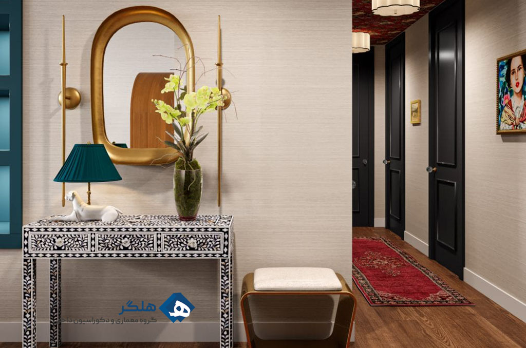 - استفاده از نور طبیعی و نصب آینهها به ایجاد حس بزرگتر بودن فضا کمک میکند. چراغهای سقفی و لامپهای دیواری نیز میتوانند فضاسازی را تحت تأثیر قرار دهند.